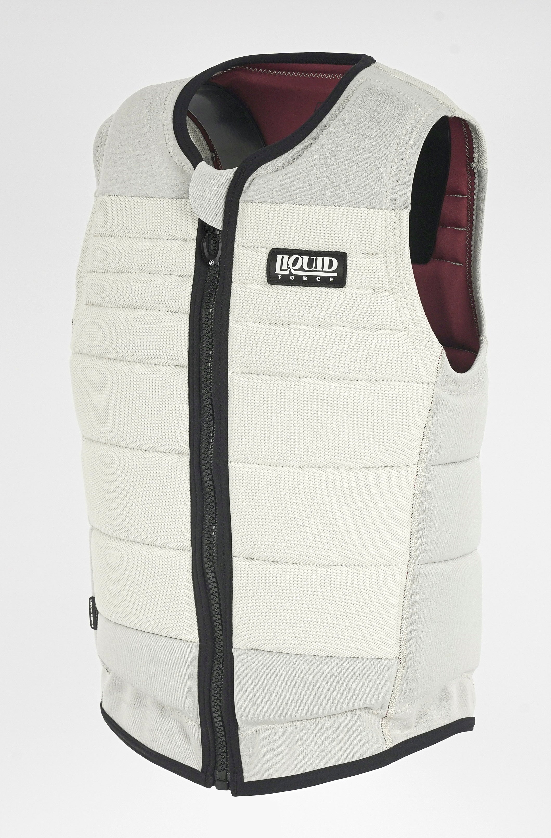 a high-performance, lightweight, and durable impact vest designed for maximum mobility in cable parks and behind the boat. It features premium Securaprene material, 4-way stretch neoprene, and 50N, high-density, ergonomic foam padding, providing a contoured, flexible fit for superior, unrestricted movement.
